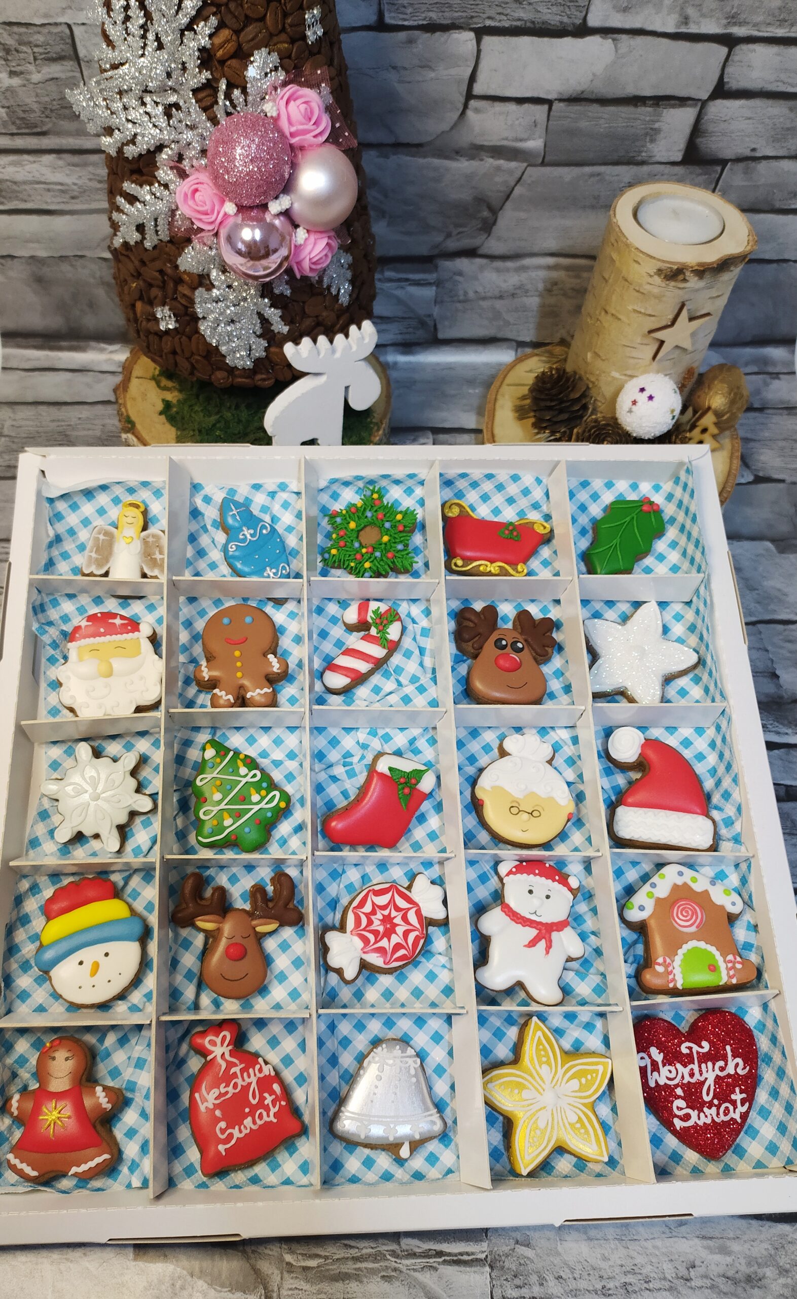 – 25 ręcznie lukrowanych pierniczków w świątecznych kształtach